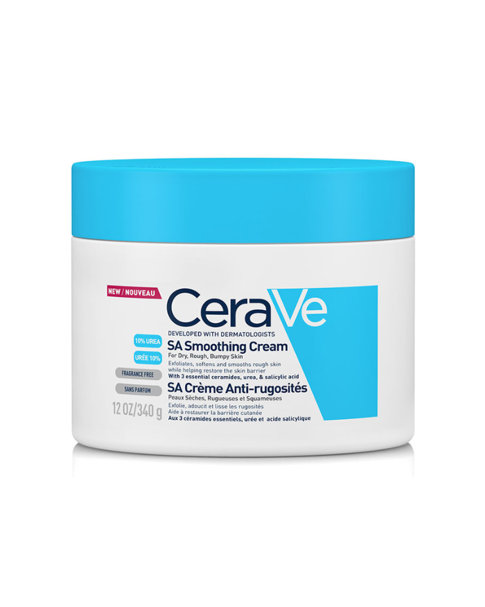 Une crème à l’acide salicylique peut exfolier, adoucir et lisser les peaux très sèches, qu’il s’agisse de la peau squameuse de vos jambes ou des bosses à l’arrière de vos bras (et de toutes les peaux rugueuses entre les deux). Pour éliminer les cellules mortes et vous aider à obtenir la peau lisse que vous souhaitez, nous vous recommandons d’utiliser une crème pour peaux rugueuses contenant de l’acide salicylique et de l’acide lactique pour une exfoliation en douceur, de l’acide hyaluronique hydratant, de la niacinamide et des céramides réparatrices de barrière pour aider à réduire la perte d’humidité. En outre, une crème hydratante pour peau rugueuse et bosselée peut aider à améliorer la texture de la peau et à la maintenir hydratée. La crème SA anti-rugosités est conçue pour améliorer la texture de la peau et adoucir la peau très sèche. Formulée avec de l’acide salicylique, de l’acide lactique, de l’acide hyaluronique et du niacinamide, notre crème sans parfum pour peau rugueuse aide à améliorer la texture de la peau en l’exfoliant, en l’hydratant et en l’apaisant, tout en restaurant sa barrière naturelle grâce à trois céramides essentiels. Pour aider votre peau à rester hydratée, la crème CeraVe SA est également dotée de notre technologie brevetée MVE Delivery Technology, qui libère en continu des ingrédients hydratants pendant 24 heures.